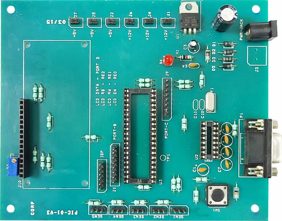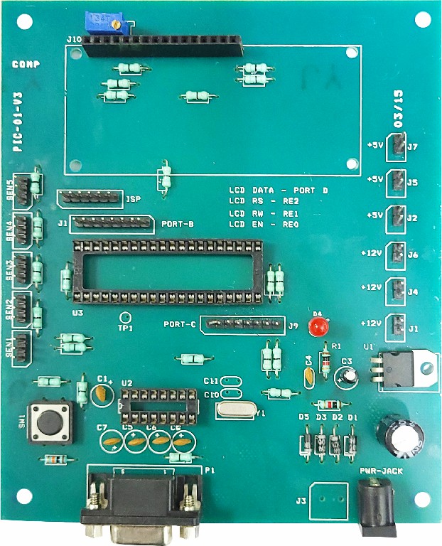 applications using the PIC16F877A microcontroller. This board is pre-assembled
