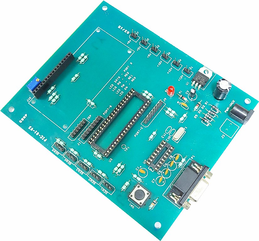 Max232 DIP IC and 16x2 LCD display compatibility. The board is designed for