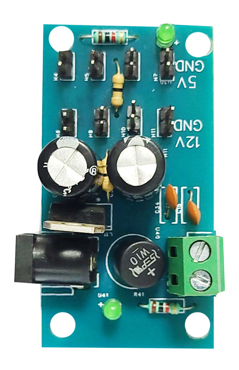 Voltage Regulators: LM7805 (5V), LM7812